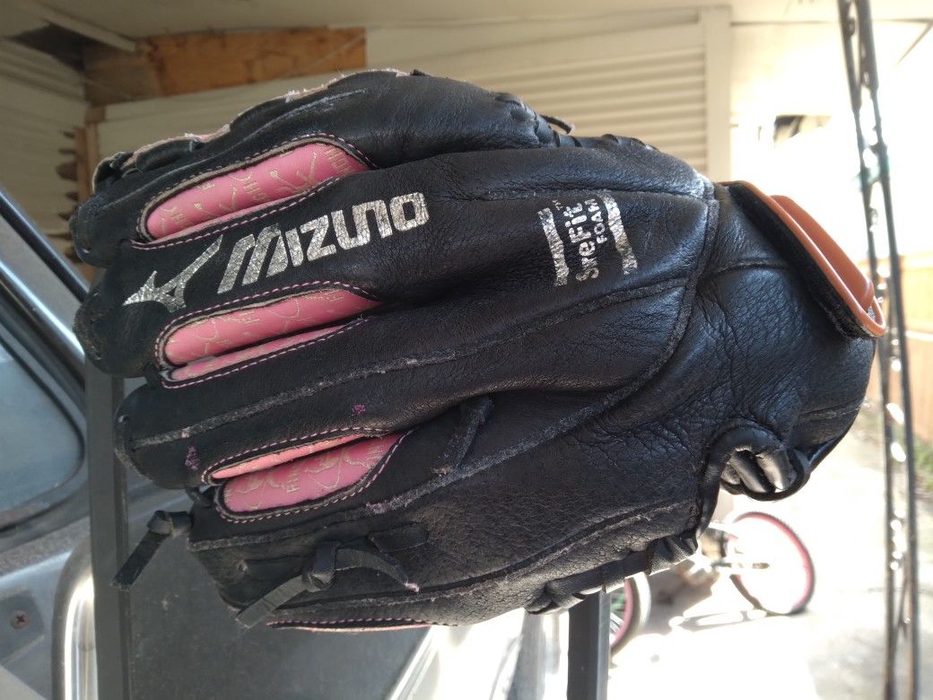 Selling one YOUTH'S 11 INCH MIZUNO/FINCH SERIES SOFTBALL GLOVE. The glove is MODEL GPP 1108 with Innovative Power Close and its made of full grain Leather. The glove is Black and Pink and its worn on your left hand, its for a right handed thrower. The glove is pre-owned in excellent condition. Asking price is $30.00. Thanks for looking