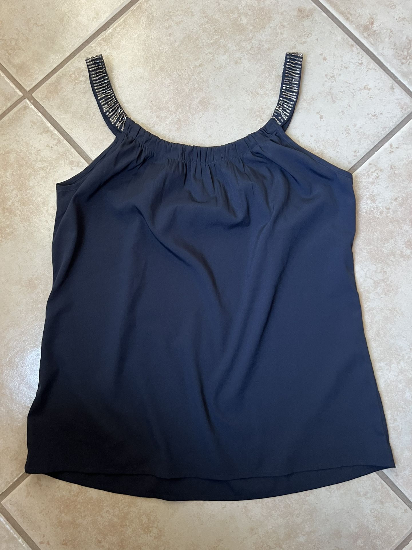 Size small Dark blue Banana Republic summer top with white and silver beads around the neckline