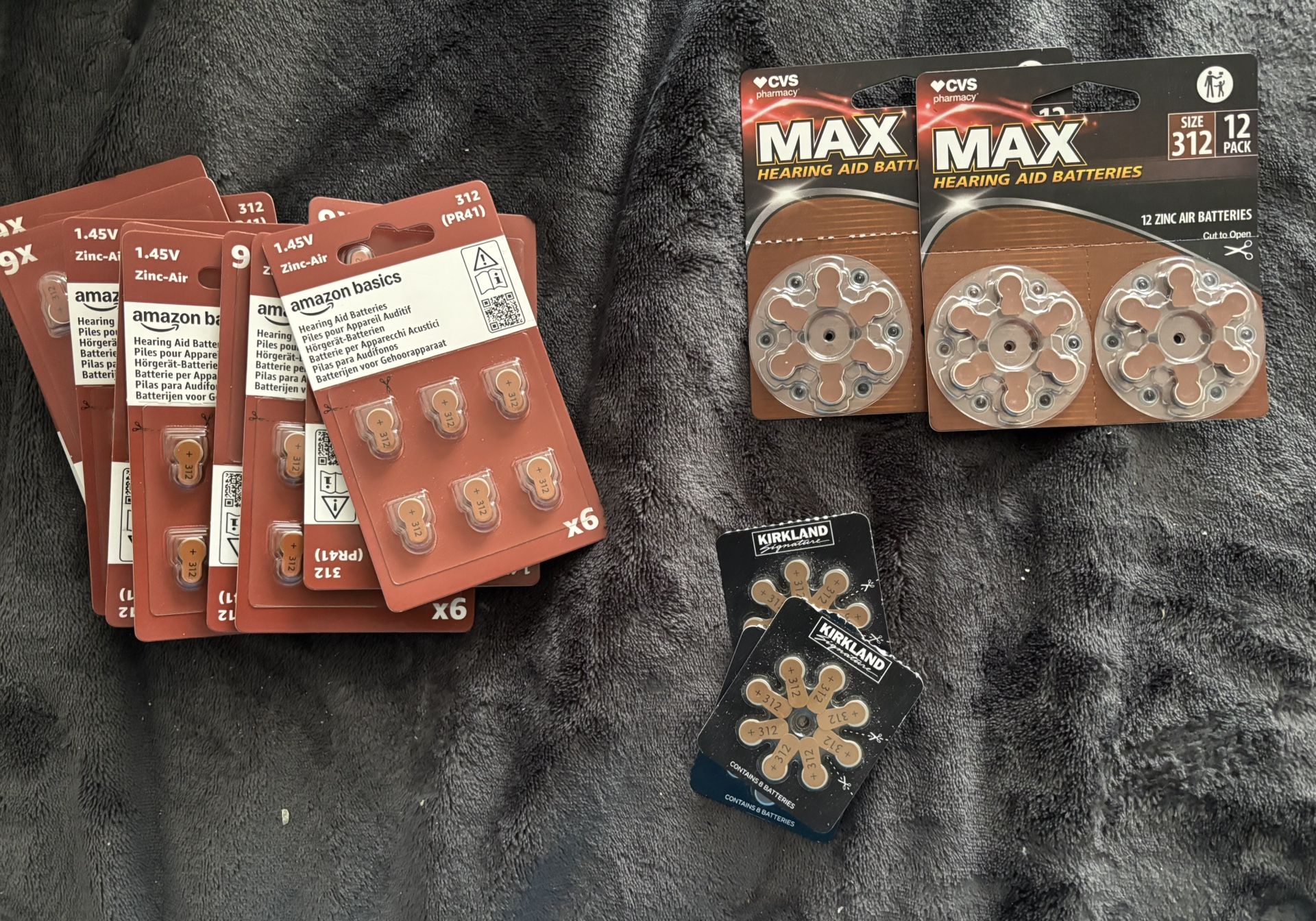 Size 312 hearing aid batteries color is brown There is a total of 104 batteries if you have a hearing aid that takes these batteries