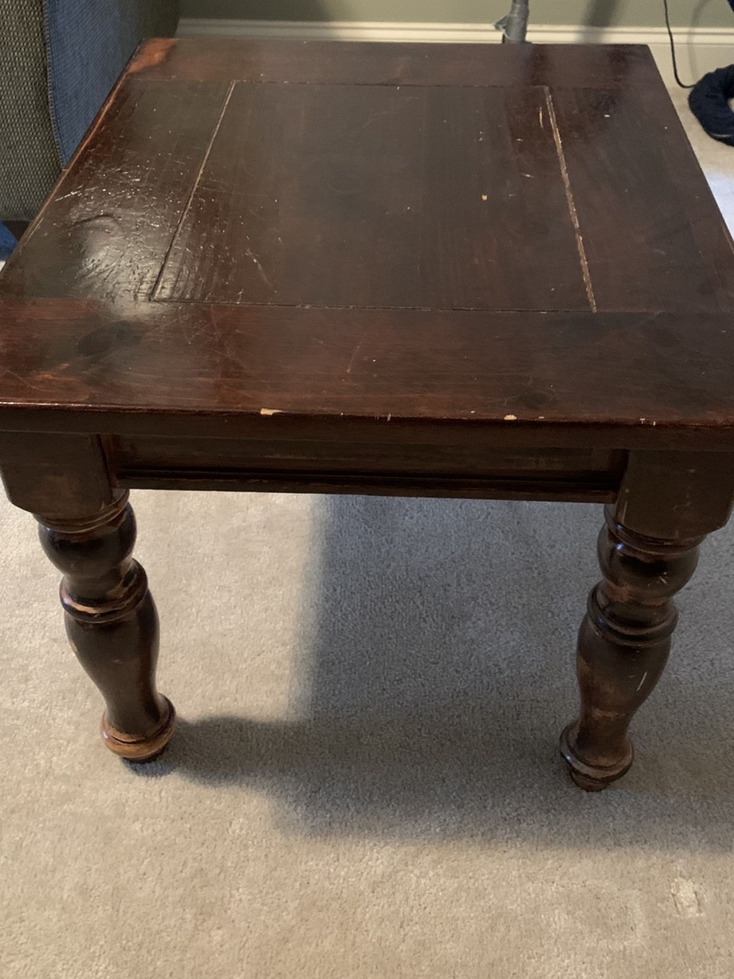 Used rustic brown end table. Measurements are 27”x23”x20”.