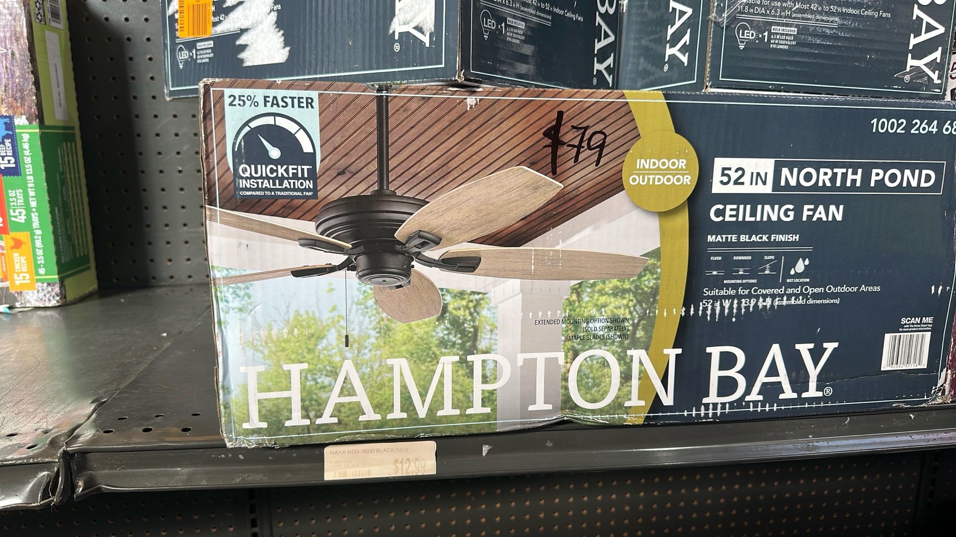 Hampton Bay North Pond 52 in. Indoor/Outdoor Matte Black Ceiling Fan with Downrod and Reversible Motor; Light Kit Adaptable
