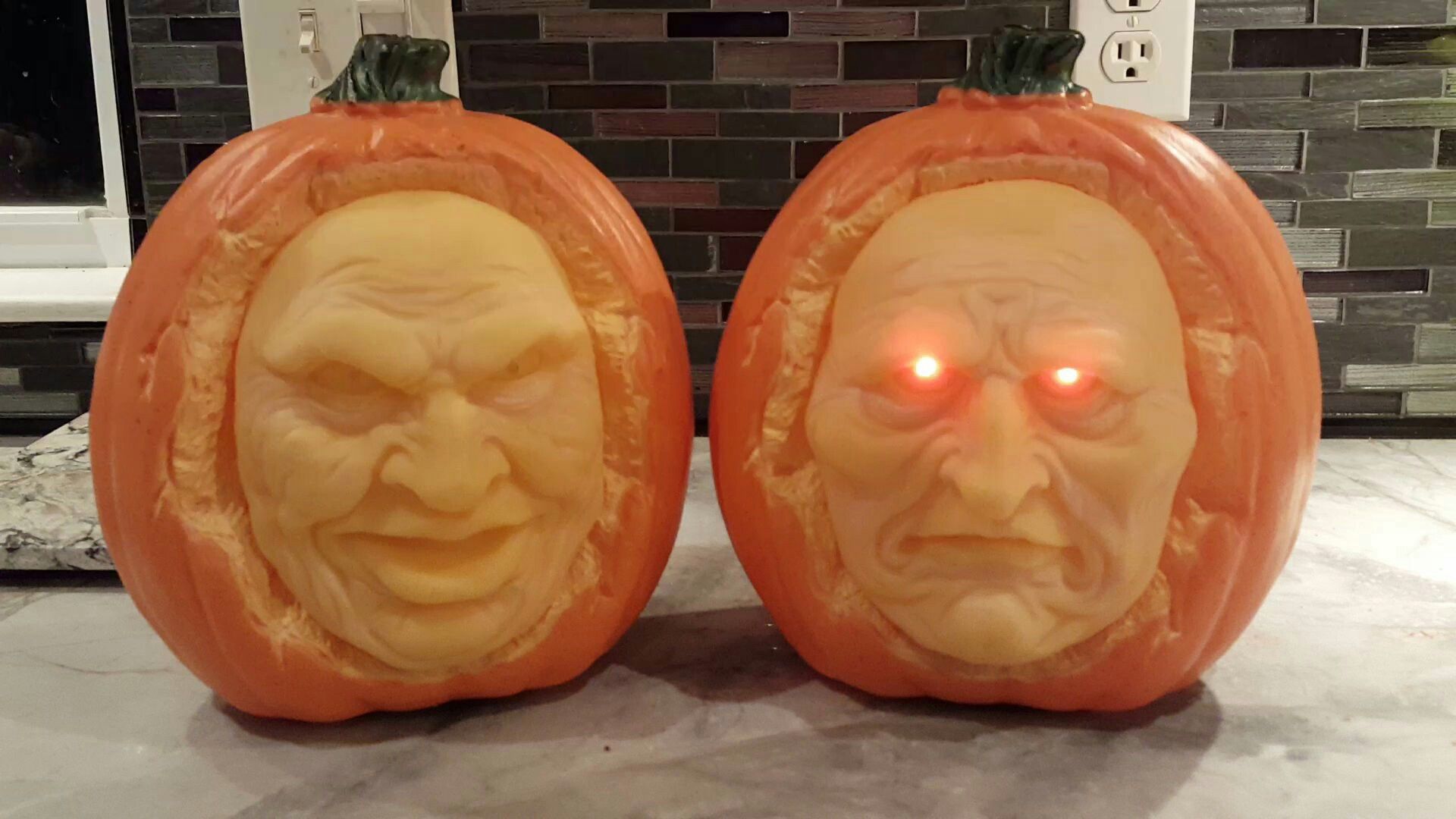 Talking pumpkin heads they talk back and forth to each other like old men cracking jokes