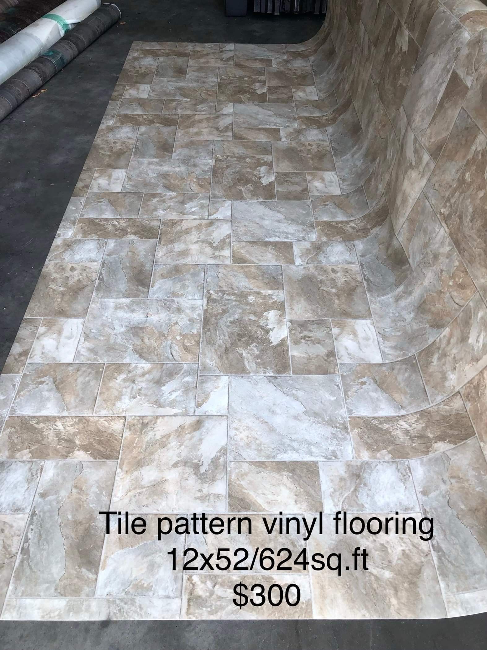 12×52 / 624 sq.ft. Only $300 Brand New Sheet Vinyl Durable 100% Waterproof Easy to clean and maintain Perfect for Bathrooms and Kitchens