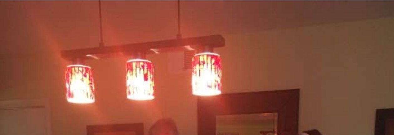 3 lamp mosaic glass light fixture, for use over a pool table or dining table.