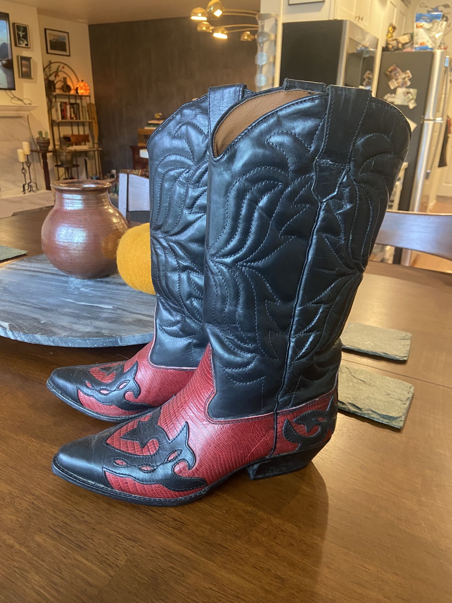 Vintage Red And Black “Fling’s” Cowboy Boots. Labeled Size 8 But Fits Like A 7.5 Women’s Shoe Size