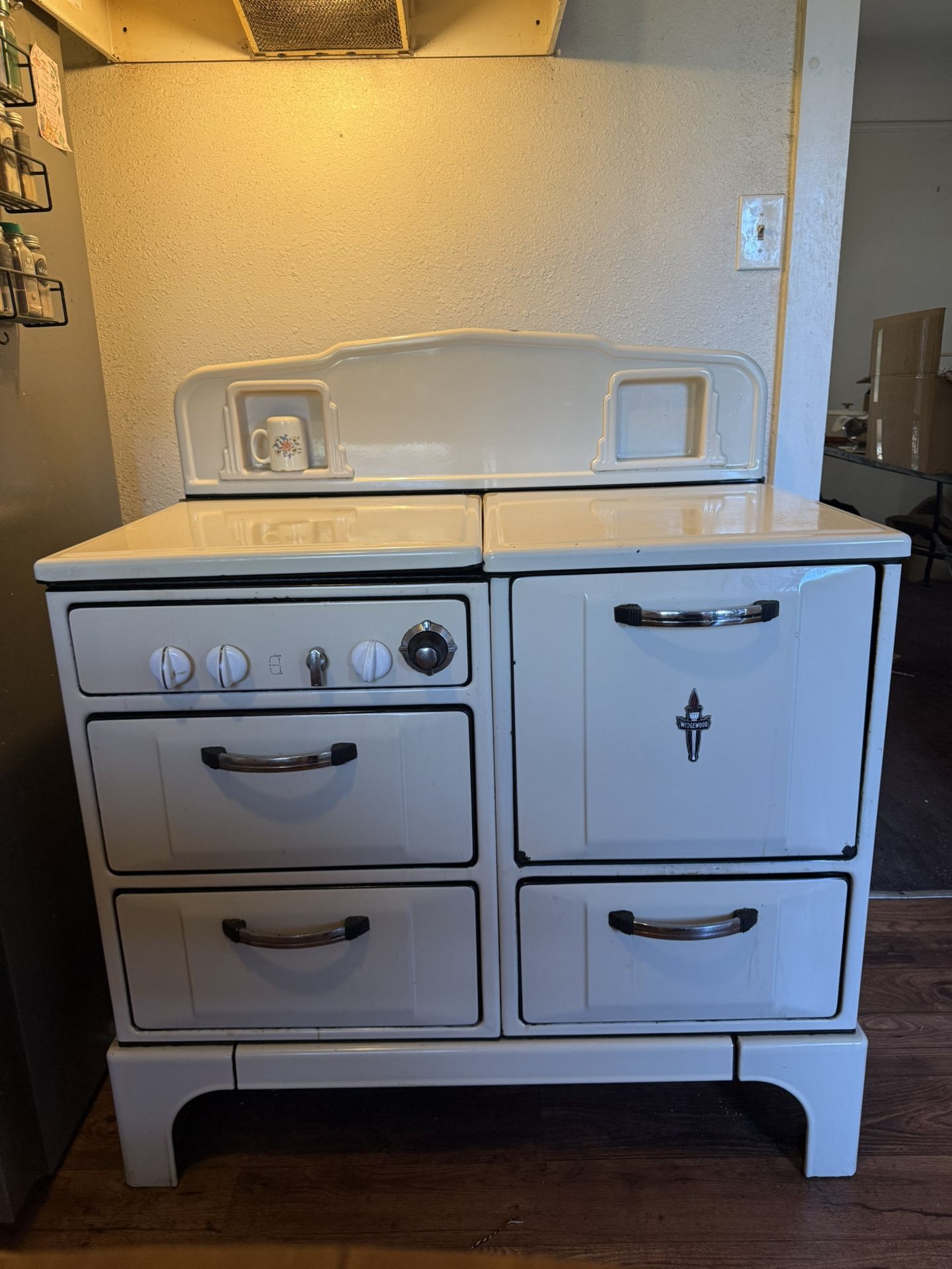 Beautiful original 1930s Wedgewood enamel gas range in great working condition. This stove has been lovingly cared for and used regularly in our home for a decade now. She’s been regularly serviced by ‘antique stove heaven’ here in LA. It lights easily, heats well, and functions as it should. Classic porcelain enamel finish with gorgeous vintage details, chrome handles, and original backsplash with built-in cubbies. Features include: • Gas cooktop with lift-up enamel covers • Oven + broiler • Warming/storage oven (upper right) • Two large storage drawers • Heavy-duty steel construction • Mechanical knobs (no electronics) Cosmetically in very nice vintage condition with light, honest wear consistent with age. No major rust or damage. Enamel presents beautifully. These classic Wedgewood ranges are known for their durability, excellent cooking performance, and timeless design. Perfect for a vintage kitchen, farmhouse, Spanish-style home, or as a statement piece in a remodel. Selling only because we are moving. Pickup: Los Angeles, CA 90016 Buyer responsible for moving — this stove is heavy. Measurements: Approx. 36” wide (happy to confirm for serious buyers) Feel free to message with any questions or to arrange a time to see it. $1600 OBO
