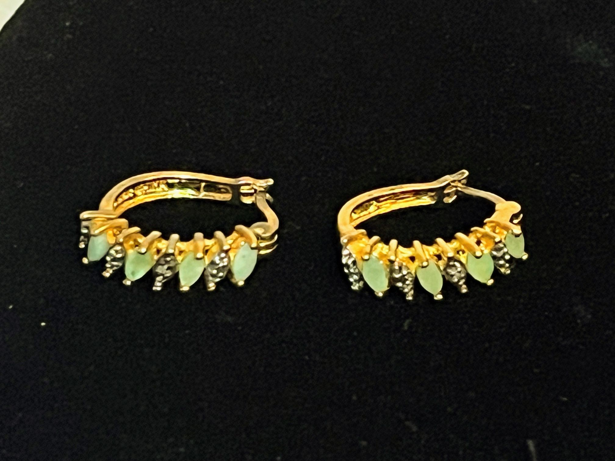 925 Sterling Silver (Stamped )Gold Tone Green Stone Hoop Earrings asking $20 Firm pick ups only No delivery No hold
