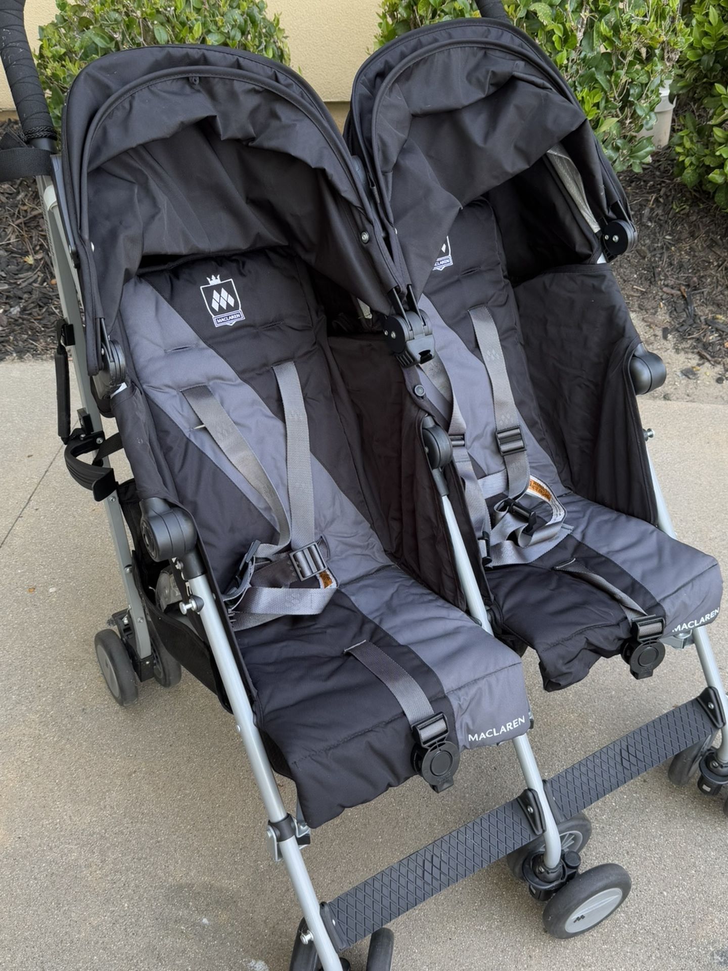 Great condition barely used MacLaren Double Stroller with rain cover.