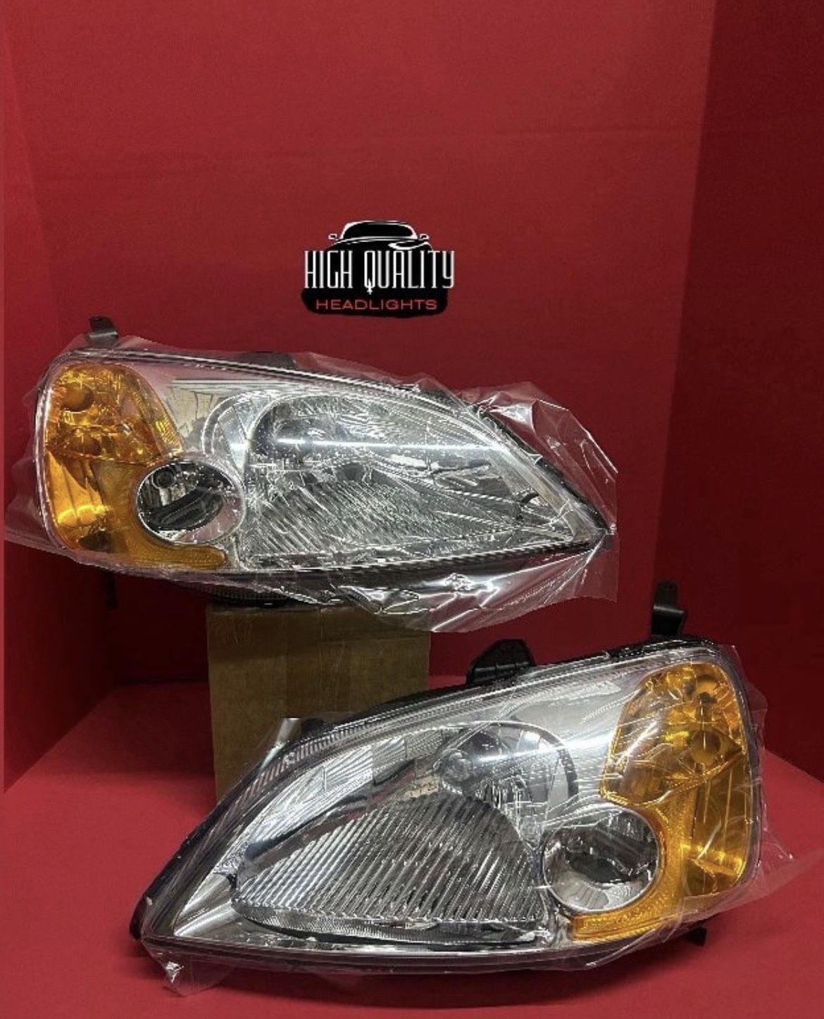 Set of headlights for Honda Civic chrome, amber OE style 2001. 2002 and 2003