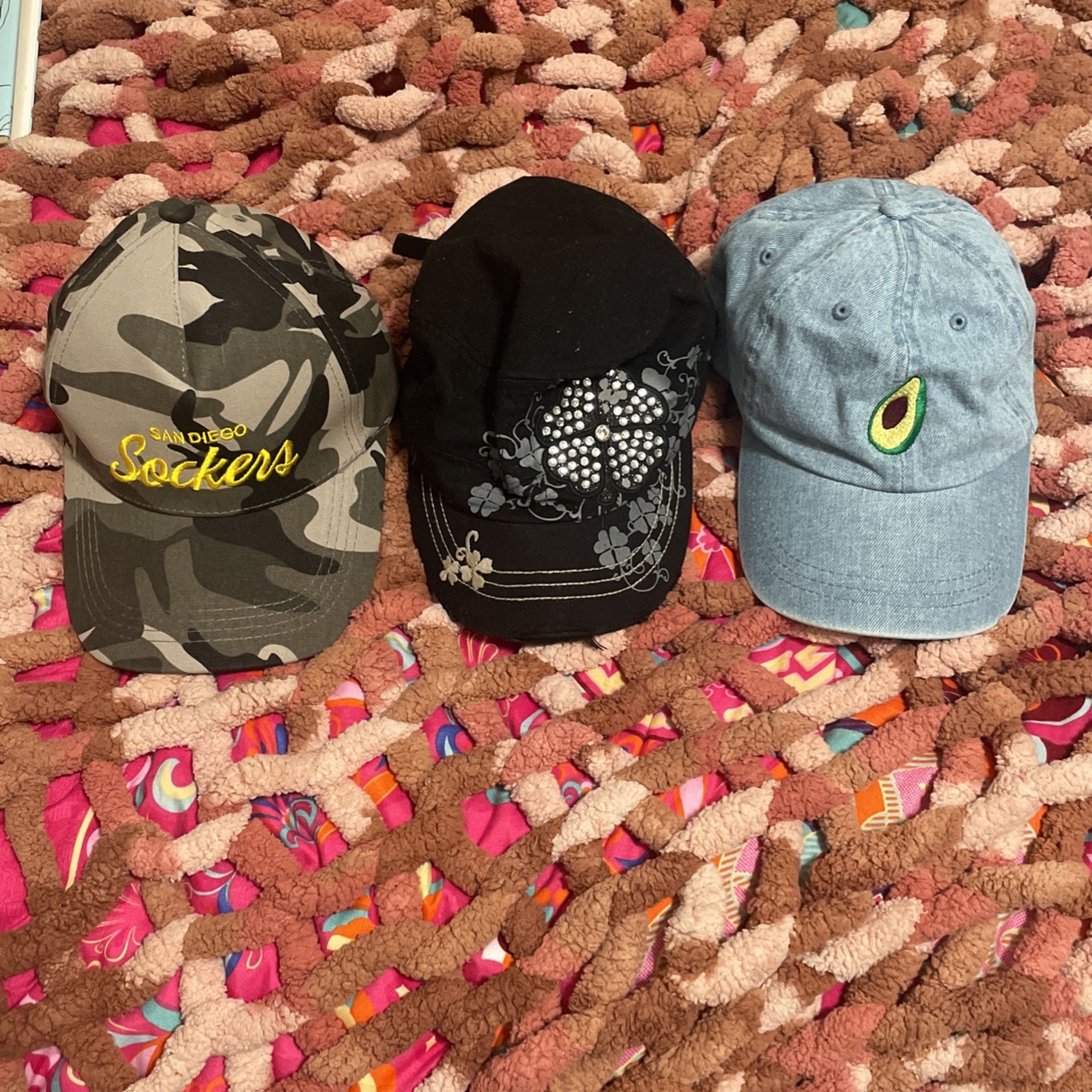 Sicker hat is brand new Avacado hat is brand new Black hat is barley worn