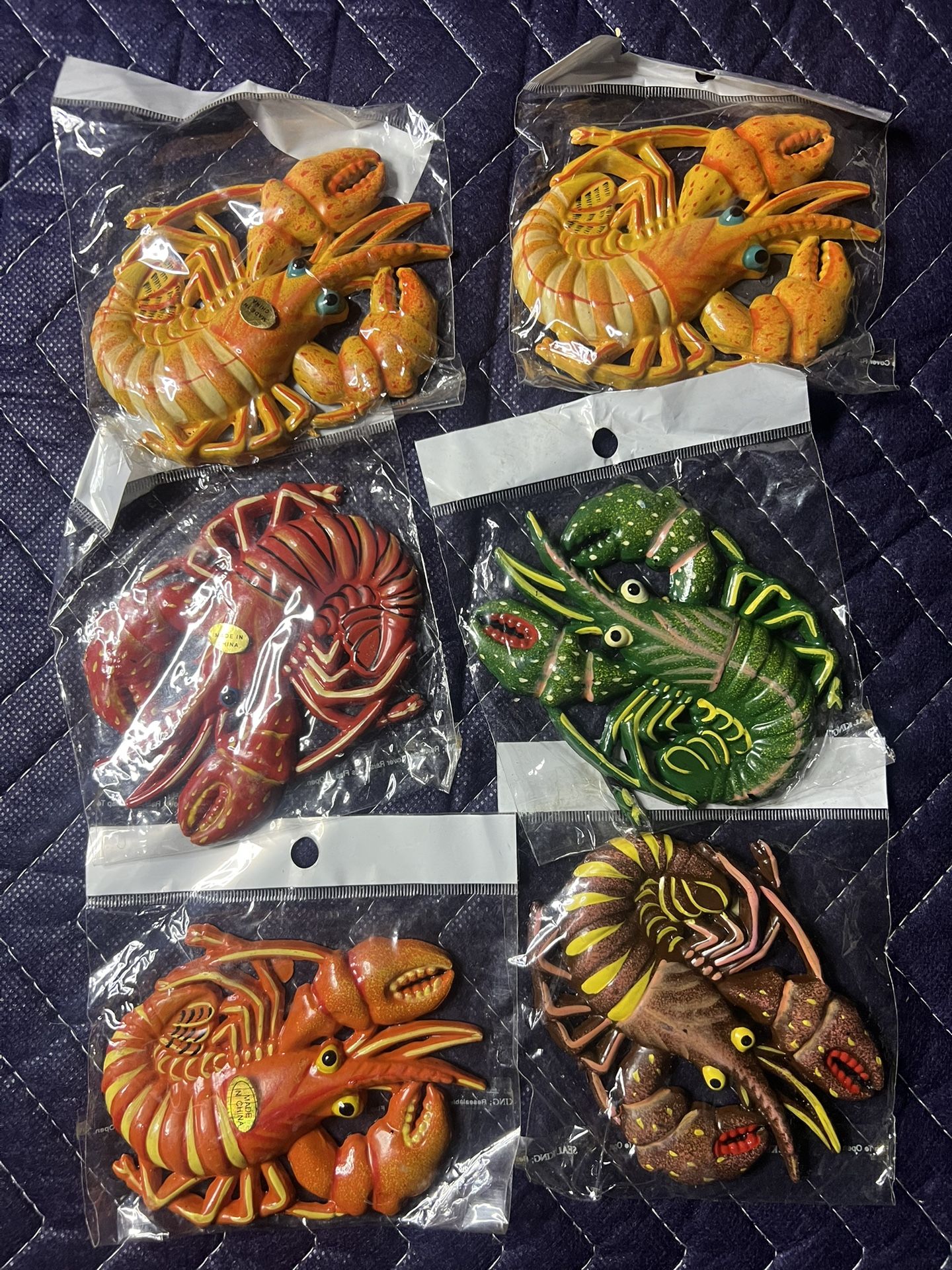 Vintage Hand-Painted Lobster Wall Plaques – Coastal Beach Decor – Sealed (Lot of 6) Add bold coastal character to your space. Set of 6 vintage hand-painted lobster/crayfish wall plaques. Bright colors, great detail, still sealed in original packaging. Perfect for: • Beach house • Coastal kitchen • Seafood restaurant • Airbnb decor • Nautical themed room Hard to find in this condition — these are vintage decorative pieces, not the cheap thin plastic you see today. Selling as a full set.