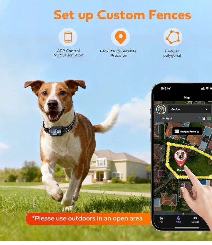 GPS Wireless Dog Fence & Training Collar System, Free App/Remote Controlled Custom Boundary up to 7000ft, Beep/Vibration/Safe Correction Modes, Early Alert, Waterproof for Dogs 10+ lbs GPS Wireless Dog Fence with No Monthly Fee: Create circular or polygonal virtual fences using free App, adjustable range from 82 to 7000 feet (up to 3534 acres), no wires or subscription required. Supports real-time tracking within Bluetooth range ≤98 feet in open outdoor areas for strong GPS signal. Black collar with matte finish and adjustable strap. Real Price $329 GPS Sistema de collar de cerca y entrenamiento inalámbrico, aplicación gratuita/límite personalizado controlado a distancia hasta 7000 pies, modos de pitido/vibración/corrección segura, alerta temprana, impermeable para perros 10+ libras Valla inalámbrica para perros GPS sin cuota mensual: Crea cercas virtuales circulares o poligonales usando aplicación gratuita, rango ajustable de 82 a 7000 pies (hasta 3534 acres), sin cables ni suscripción. Admite el seguimiento en tiempo real dentro del rango de Bluetooth de 98 pies en áreas abiertas al aire libre para una fuerte señal GPS. Collar negro con acabado mate y correa ajustable.