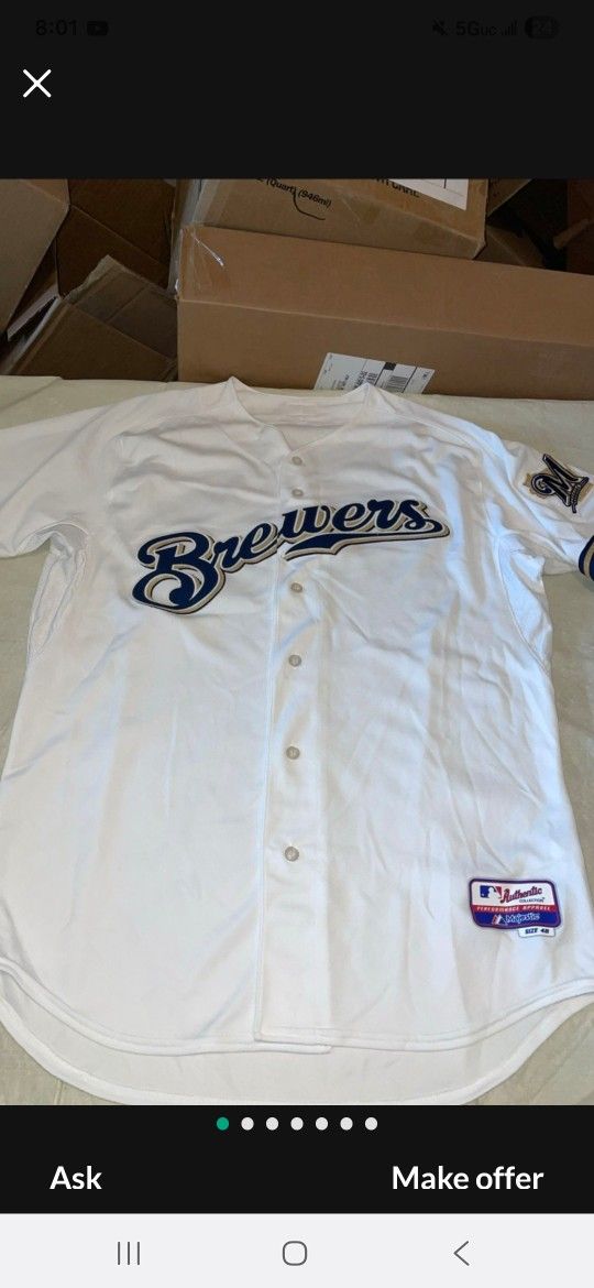 Authentic Milwaukee Brewers Majestic Jersey Mens 44 large White USA 6300 Clean Vintage