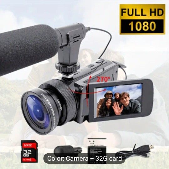 New in box Portable Camera, Body Camera, 32GB Memory Card, 16 Megapixel High, -definition Microphone, Camera for Vlogging, 16x Digital Zoom, Screen Flip 270 Degrees, Recording Life. Suitable for Outdoor Camping, Travel, And Daily Photography, Video Camera