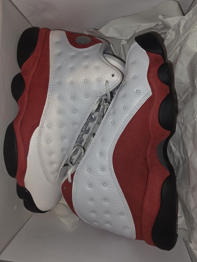 Selling a clean pair of the Air Jordan 13 Retro "Cherry" (also known as the 2017 Chicago). This is a classic OG colorway featuring the iconic white tumbled leather and vibrant Team Red suede. Size: 9.5 US Men’s Condition: [8.5/10 — lightly worn] Authenticity: 100% Authentic. Hologram is cloudy, and the 3M reflective panels are bright. Key Details: Red suede is in great shape with no fading. Soles have plenty of life left with minor. Included: Original box is included Price is $130 OBO. Check my profile! I am selling 13 other pairs of sneakers and will offer a bulk discount if you buy more than one. Pickup Location: Covington, GA Shipping: Available if requested (Buyer pays shipping).