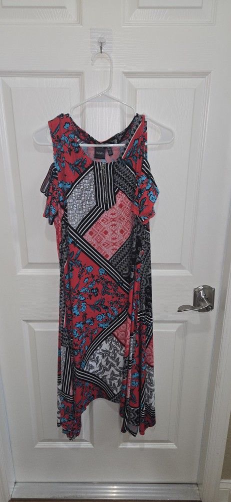 Red/black/blue floral maxi dress with a boho vibe. Size Large. Barely worn.