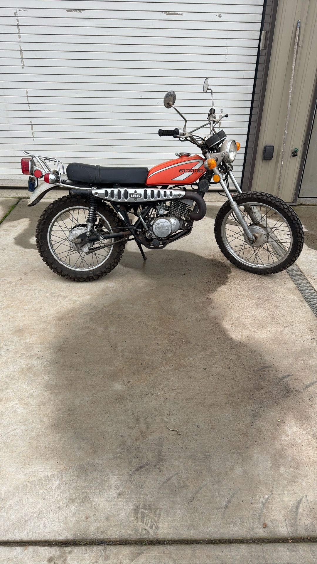 This is a classic 185 Suzuki motorcycle 1975 it’s in great condition