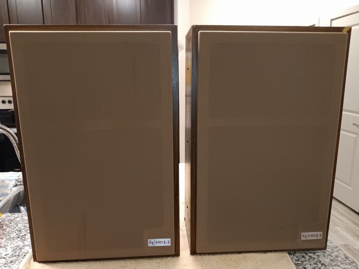 Vintage Pair of Electro Voice EV FR12-2 Loud Speakers Full Range Walnut Cabinet