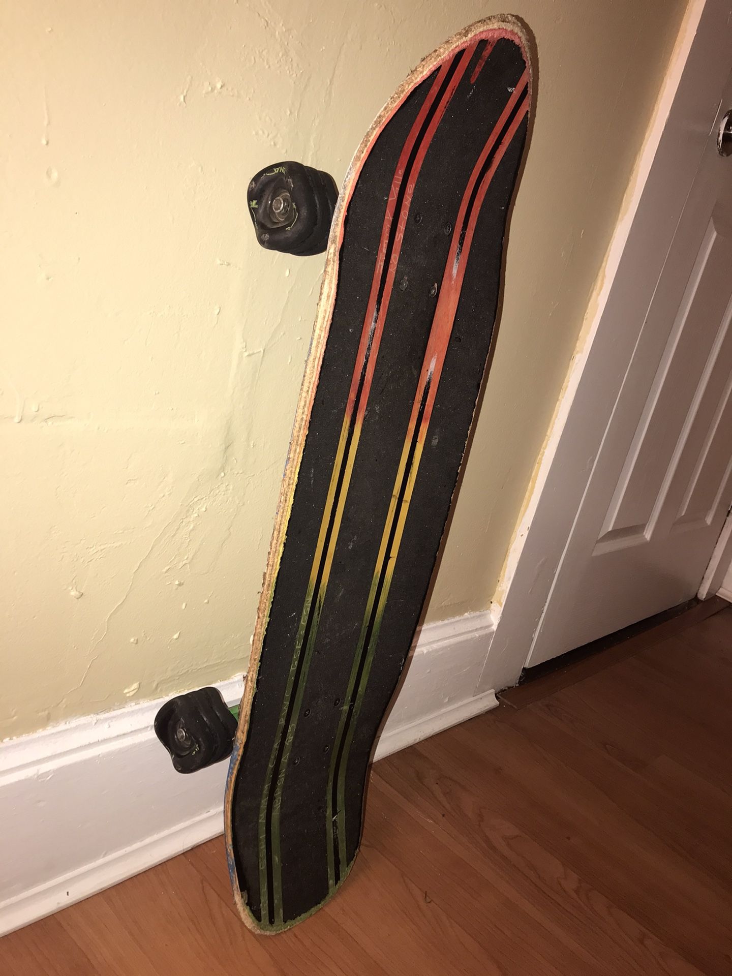 Used cruiser board , extremely tough great shape , Shark wheels included , for experience skaters if you don’t know anything about a cruiser just know is really fast and can easily brake a bone if inexperienced , careful also with custom made “Rick smoking dab”