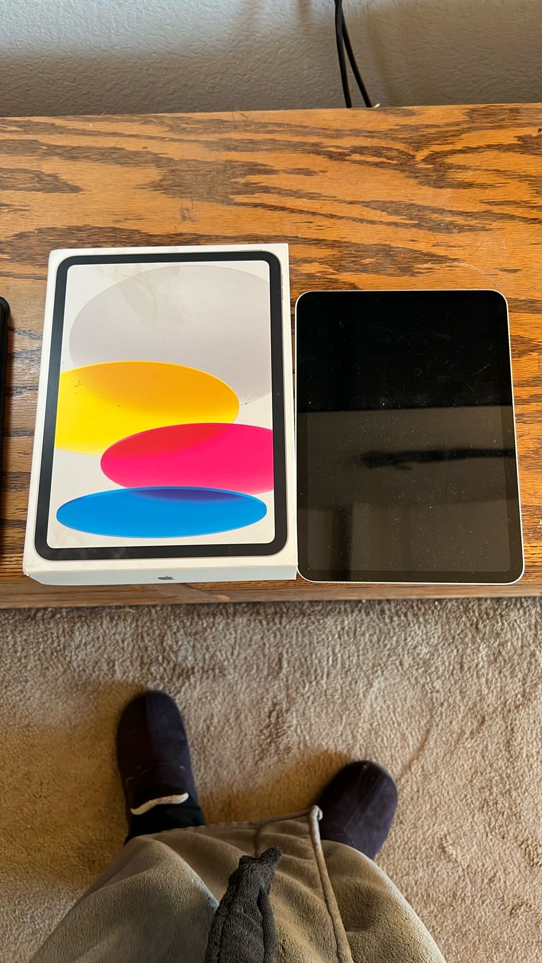 New iPad . I bought the wrong one for my wife in May. Latest model. Gold colored. IOS 18.5. She loaded her stuff, but ended up needing more memory. 1 1/2 yrs of Apple Care left. Bought for $450 ( I’ll show you the receipt), so $350 very firm.