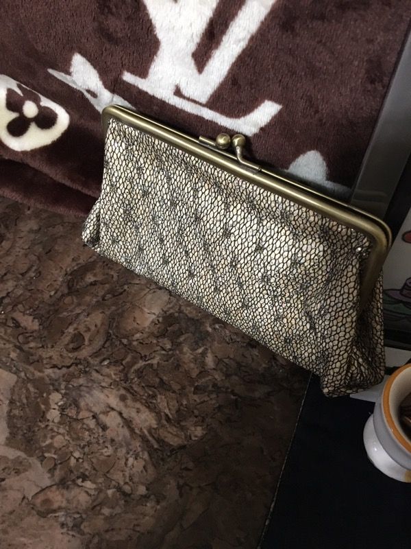 Cutest style Clutch bag with gold shimmering color that shines! Stands out marvelous especially in the evening but may wear with casual! Reaction name brand Almost brand new, used only once but cleaning my closet and must go! Sold as is