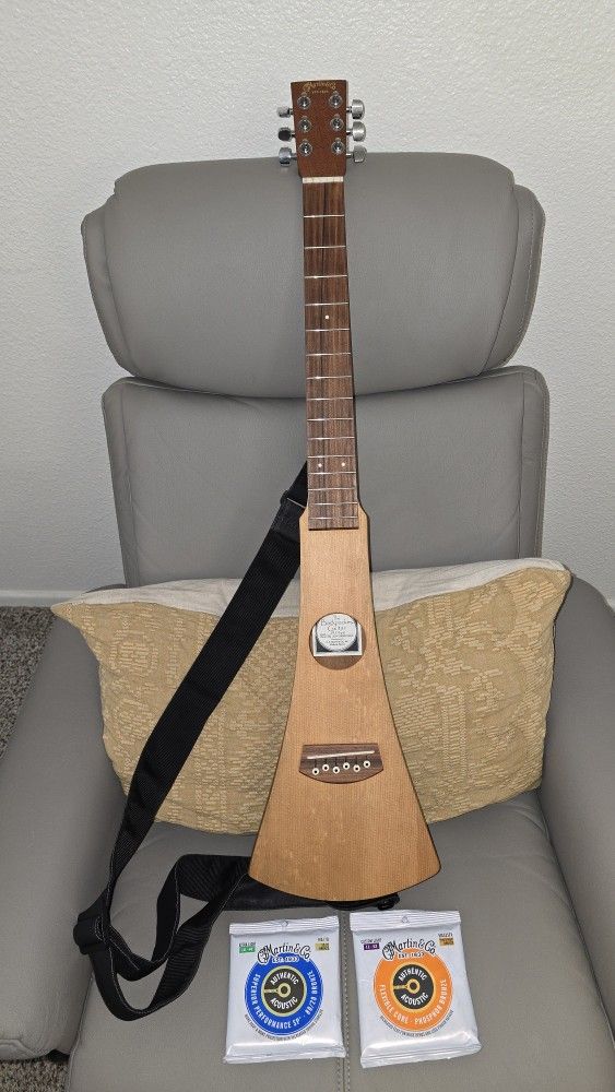 Martin Backpacker very portable lovely acoustic guitar 2 brand new packs of strings included 1 strap included no case, but fits in any smaller acoustic or electric case perfect for small space or travel
