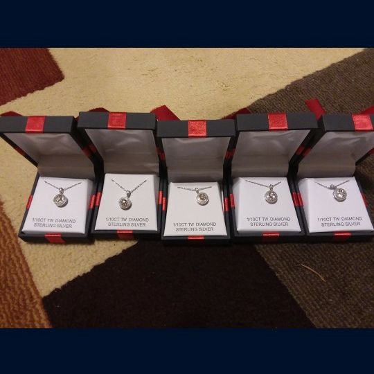 Lot of 5! 1/10 carat Diamond Sterling Silver Pendant Necklaces! As seen in pictures. Brand new in box. $200 for the entire lot. Will NOT Separate. Must pick up in Shoreline.