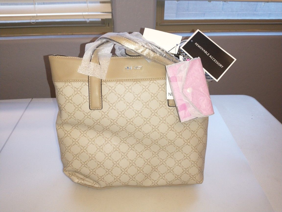 New nine west handbag mushroom Logo Multi With 3 Compartments & Bonus Pink Wallet Accessory