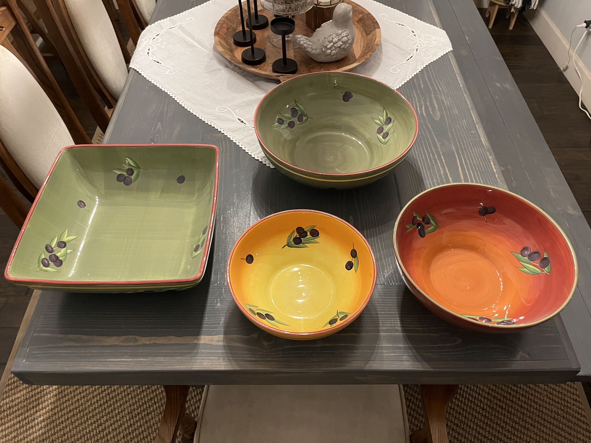 I am selling an Extra Large Tuscan Serving set. Perfect for large gatherings or Holidays. Will not separate only selling as a set. Asking $185.00 or best offer. Size of bowls in pictures posted.
