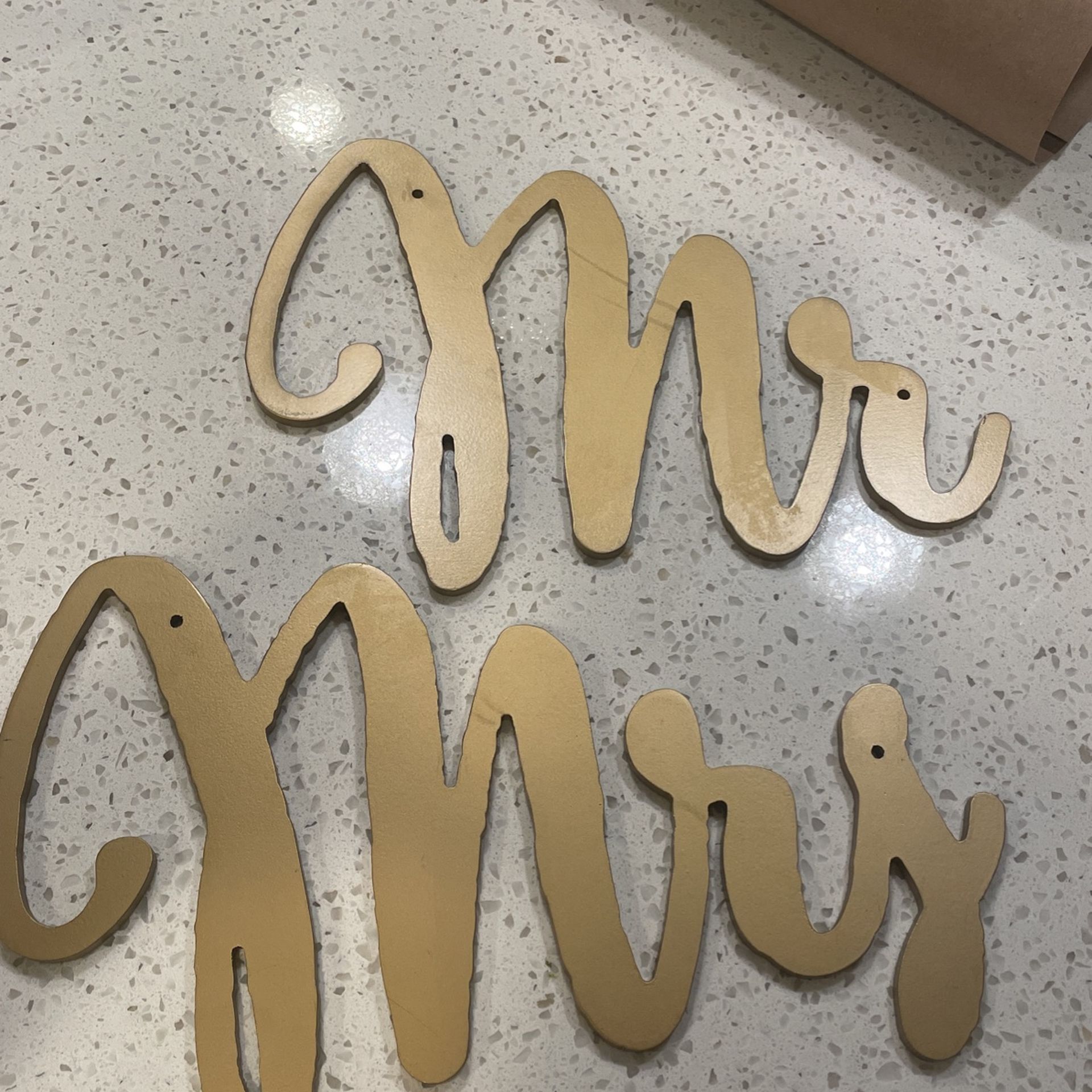 Chair signs in gold. Normal wear. Please look at pictures. Can be used liked that or repainted.