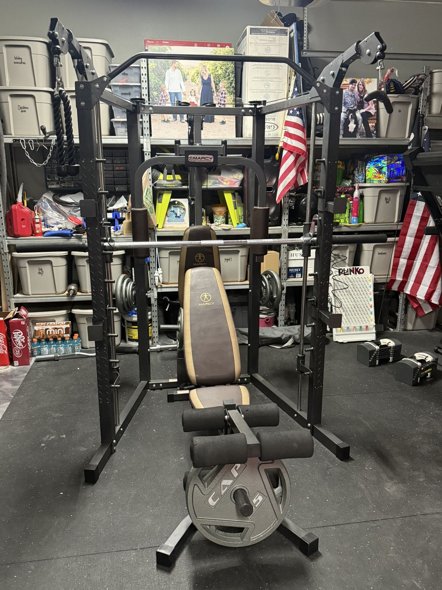 Marcy home gym full body functional trainer with smith machine. Comes with 220lbs CAP weight plates 2.5-45lbs. Weight alone is 200 dollars. Cable attachments are included everything you need for a home gym.