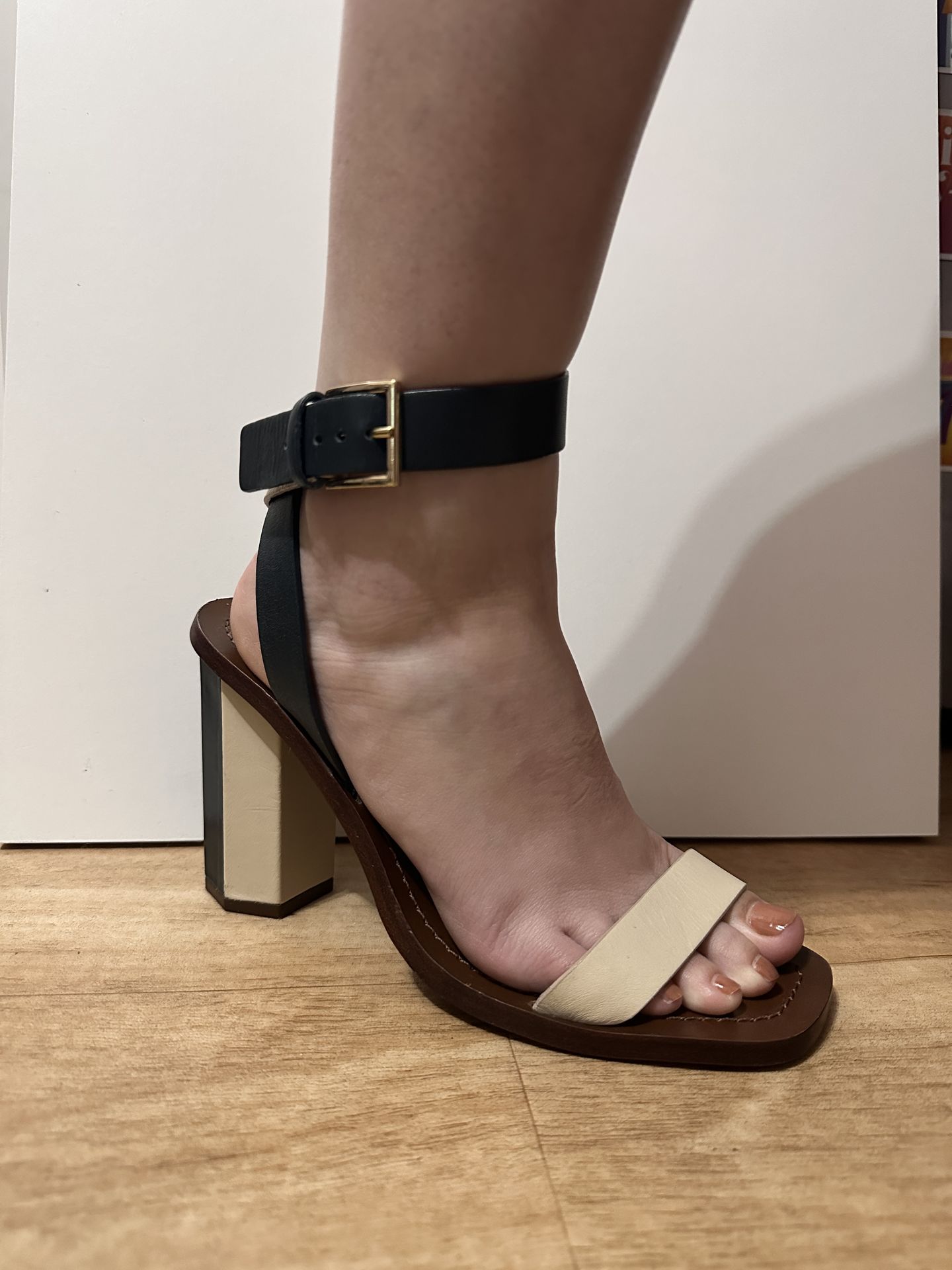Tory Burch Bleecker Strappy Leather Block Heels - Navy & Dulce de Leche(Cream) color - Size 7.5 US Womens - Leather sole - 4 inch hexagonal block heel - Light wear pictured Please see pictures for detailed references. If any questions, feel free to ask. Open to offers. Pick up preferred but willing to drop off nearby.