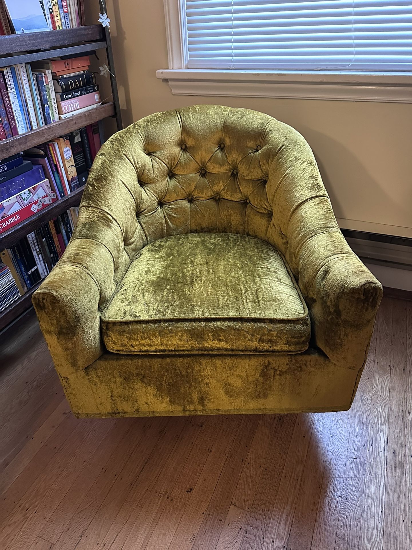 Paoli Chair Company vintage velvet accent chair in olive green. Tufted barrel style with a slight rocking motion. Comfortable, sturdy, and overall a great piece. Smoke-free home. Pickup only. $175 OBO