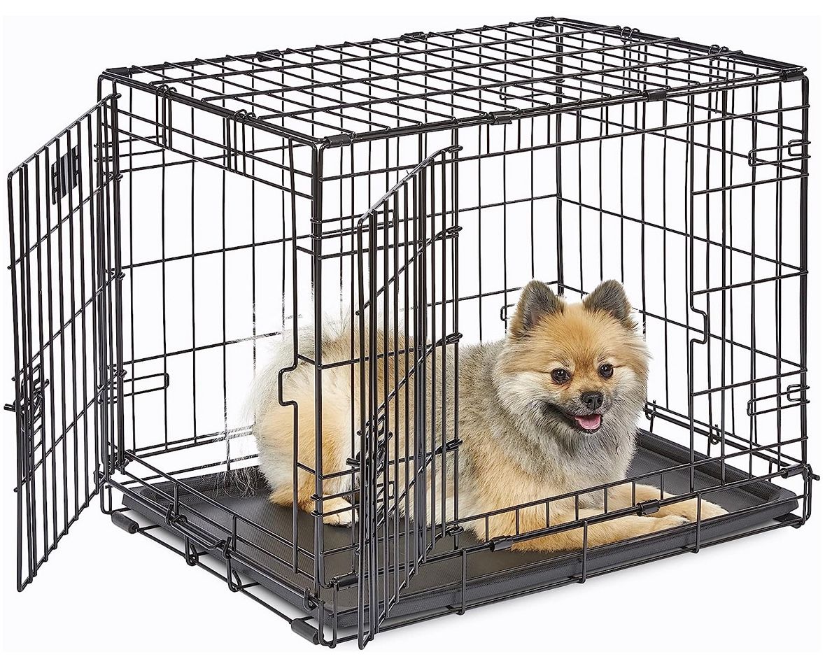 Brand: Midwest Homes for Pets (iCrate) Dog not included Larger Double Door Dog Crate, Includes Leak-Proof Pan Brand: Midwest Homes for Pets (iCrate) Dog not included. Size: 30.67"L x 19.3"W x 21.46"H Condition: Like New. Our dog didn't take to it. Perfect for small to medium sized dogs.