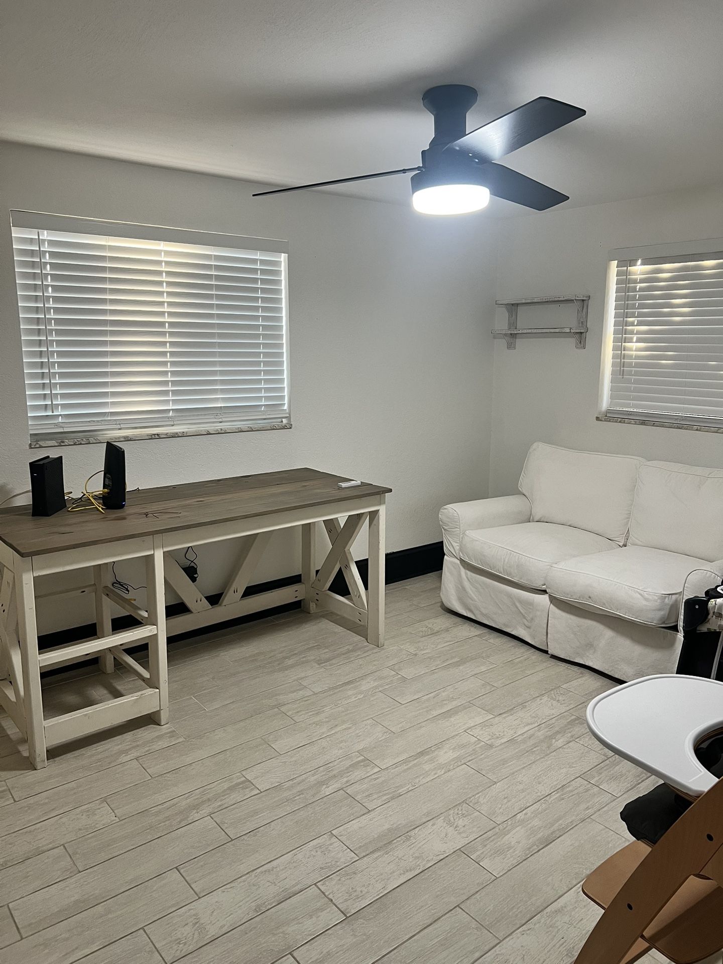 Used table computer desk White 2 seat sofa couch In used good conditions, take them both for $40 OBO Located in Clearwater Message me if any questions