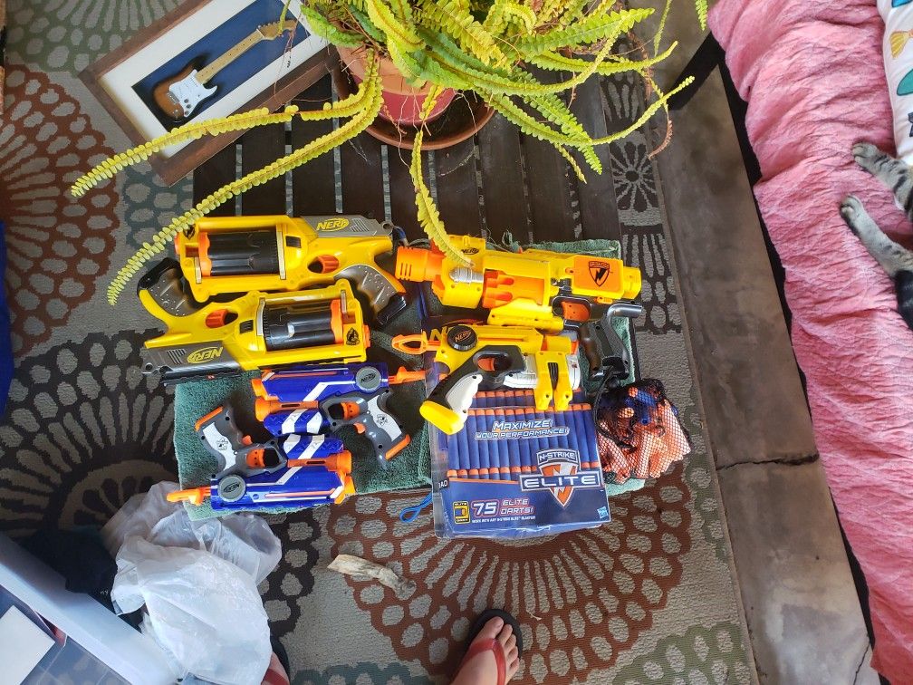 $60 FOR EVERYTHING. Individual prices below. 1 Nerf N-strike Ex3 Nite Finder - $6 2 Nerf N-strike Elite Firestrike Blaster - $20 or $10 each 2 Nerf Maverick Rev 6 - $20 or $10 each 1 Nerf Barricade RV 10 - $20 Nerf N-Strike Elite Darts - 75 pack + bag of darts - $10