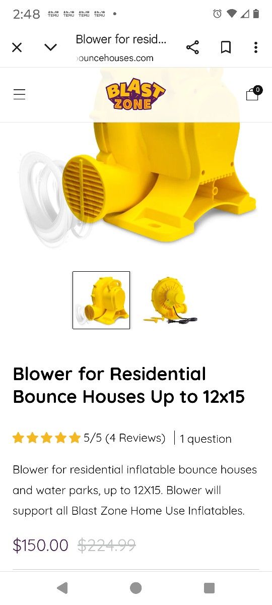 NEW electric blower for bounce houses and other inflatables. 25 get cord plus GFCI. Never opened and never used. $45