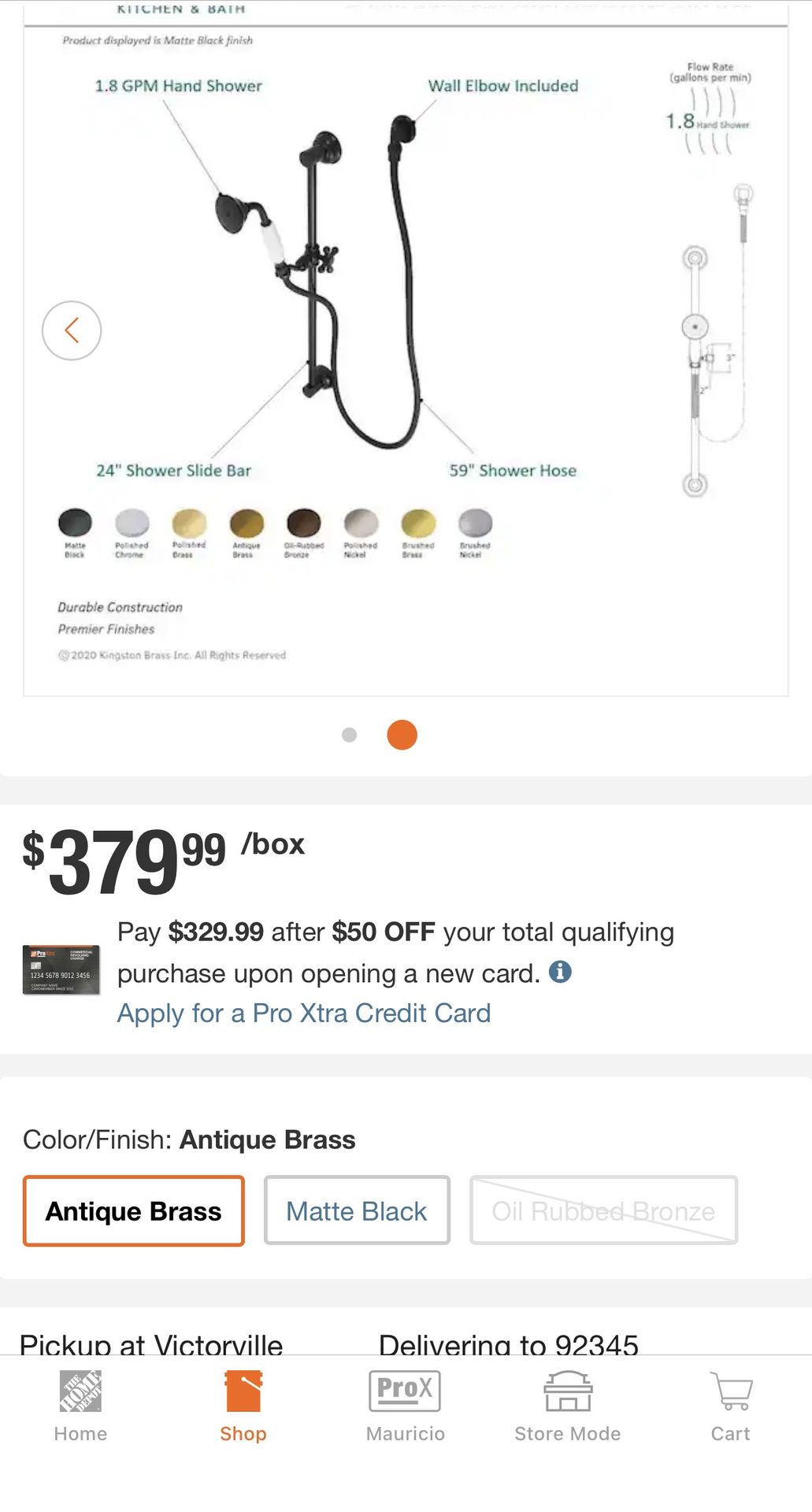Hi everyone we have this shower slide bar beautiful only $275 no tax cash or Zelle we locate in hesperia ca we also can do shipping this good deal here you saving $135 dls Store price $413 wt tax Kingston Brass 24 in. Adjustable Shower Slide Bar with Shower in Antique Brass