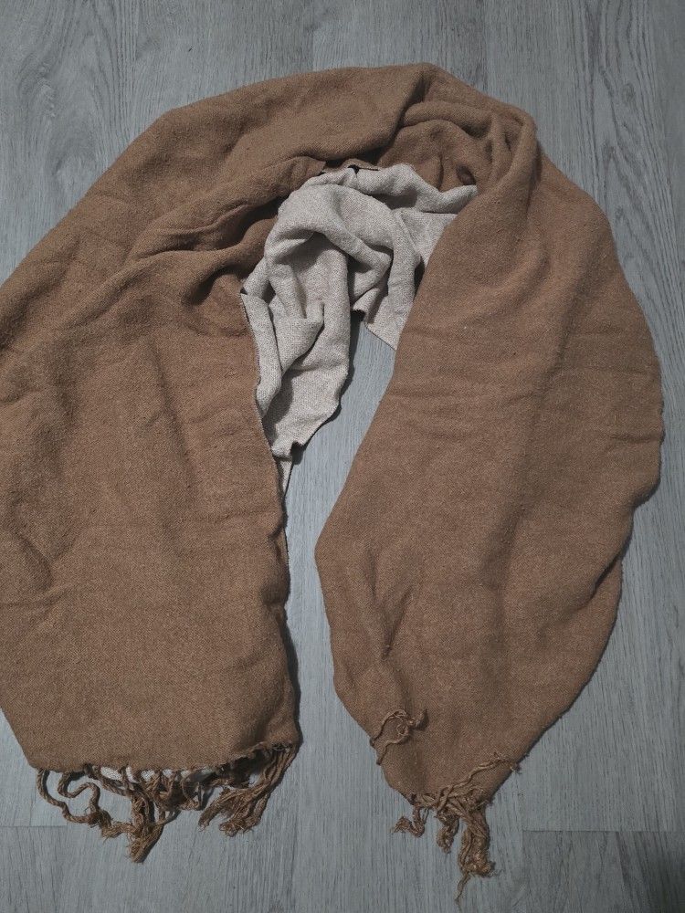 Long brown shaw, soft material good to use to add extra coverage for dresses or other outfits.