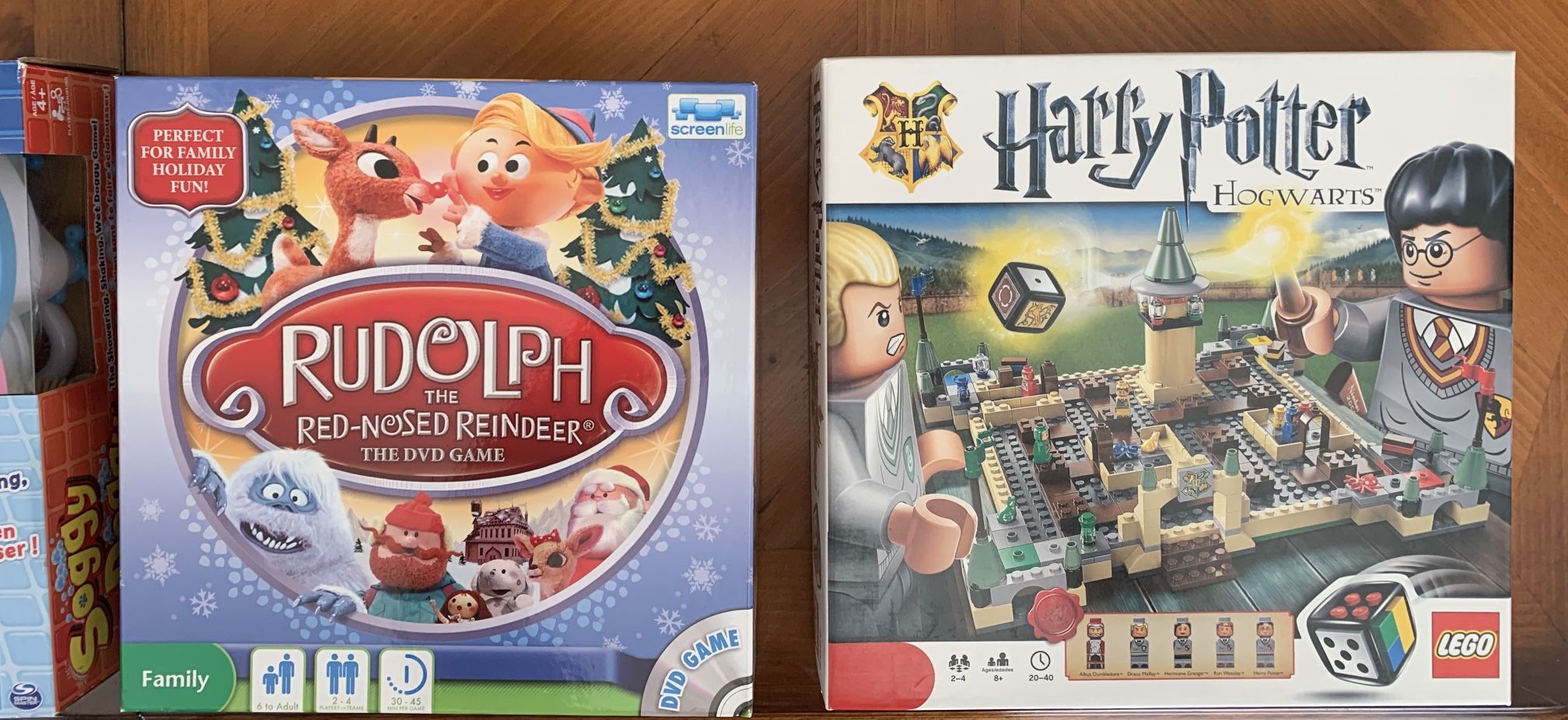 Games board, games children’s games, Harry Potter, Rudolph soggy doggy yeti and spaghetti $10 each