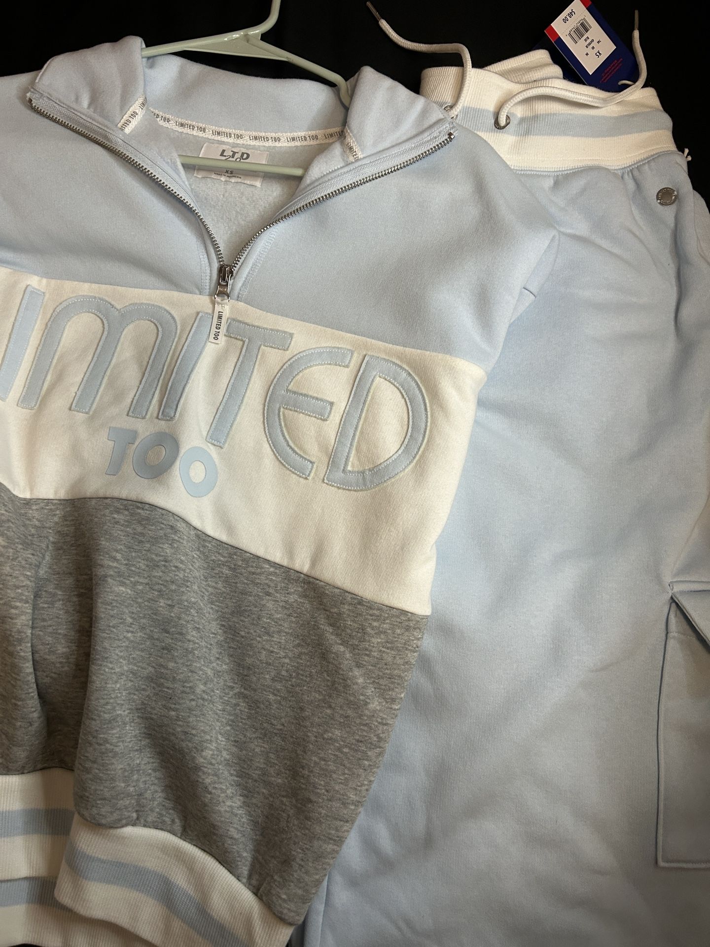 Brand new still has the tags on it. Didn’t and up using it. They are both size XS. They are warm and have a comfortable fit to them . Text me if interested . Pants were 40 & rip 45