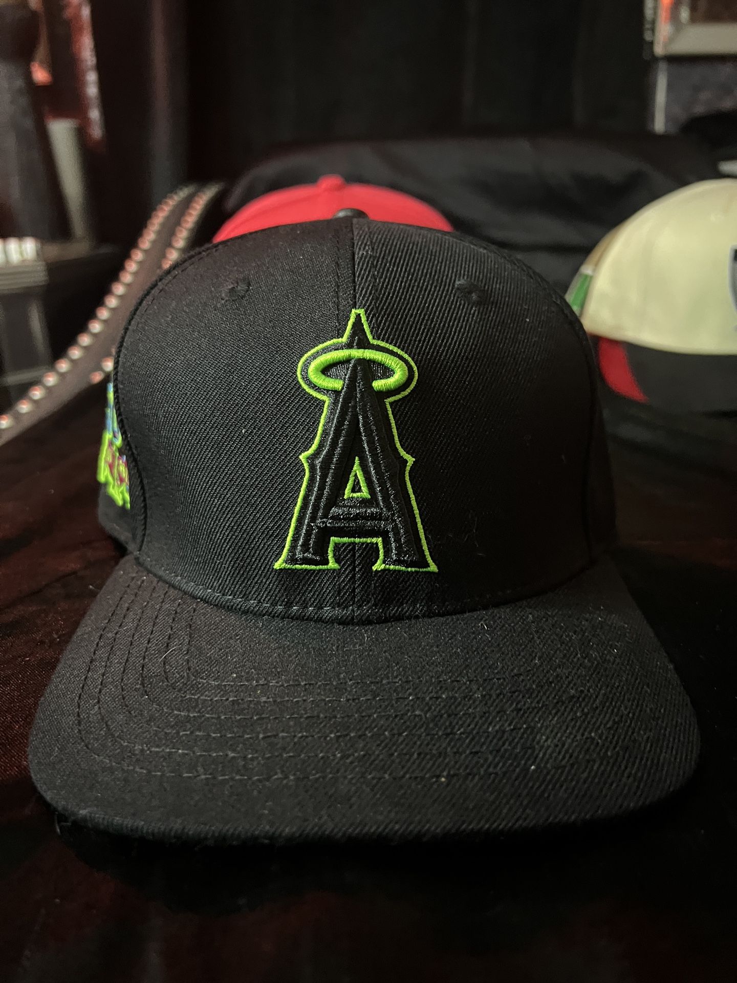 Lime green & black angels snapback with 50th anniversary side patch, never worn new hat.
