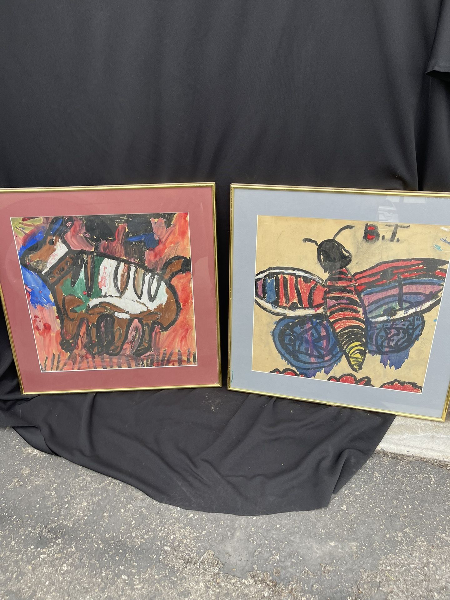 LOT OF TWO VINTAGE PAINTING BUGZ AND RABIT IN A GOLDEN FRAME . DIMENTION 22” X 22” BIG ARTS NICE TO ADD COLLECTORS ROOM
