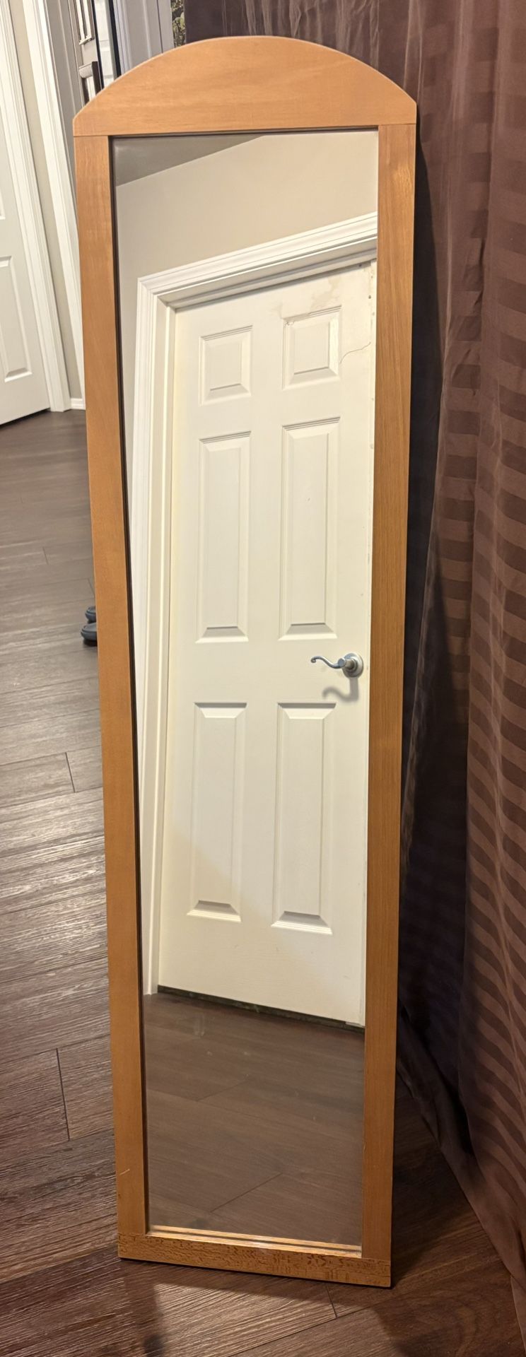 Full length stand alone mirror with wood trim. PLEASE CHECKOUT MY OTHER ITEMS, I WILL OFFER A MULTI ITEM PURCHASE DISCOUNT!