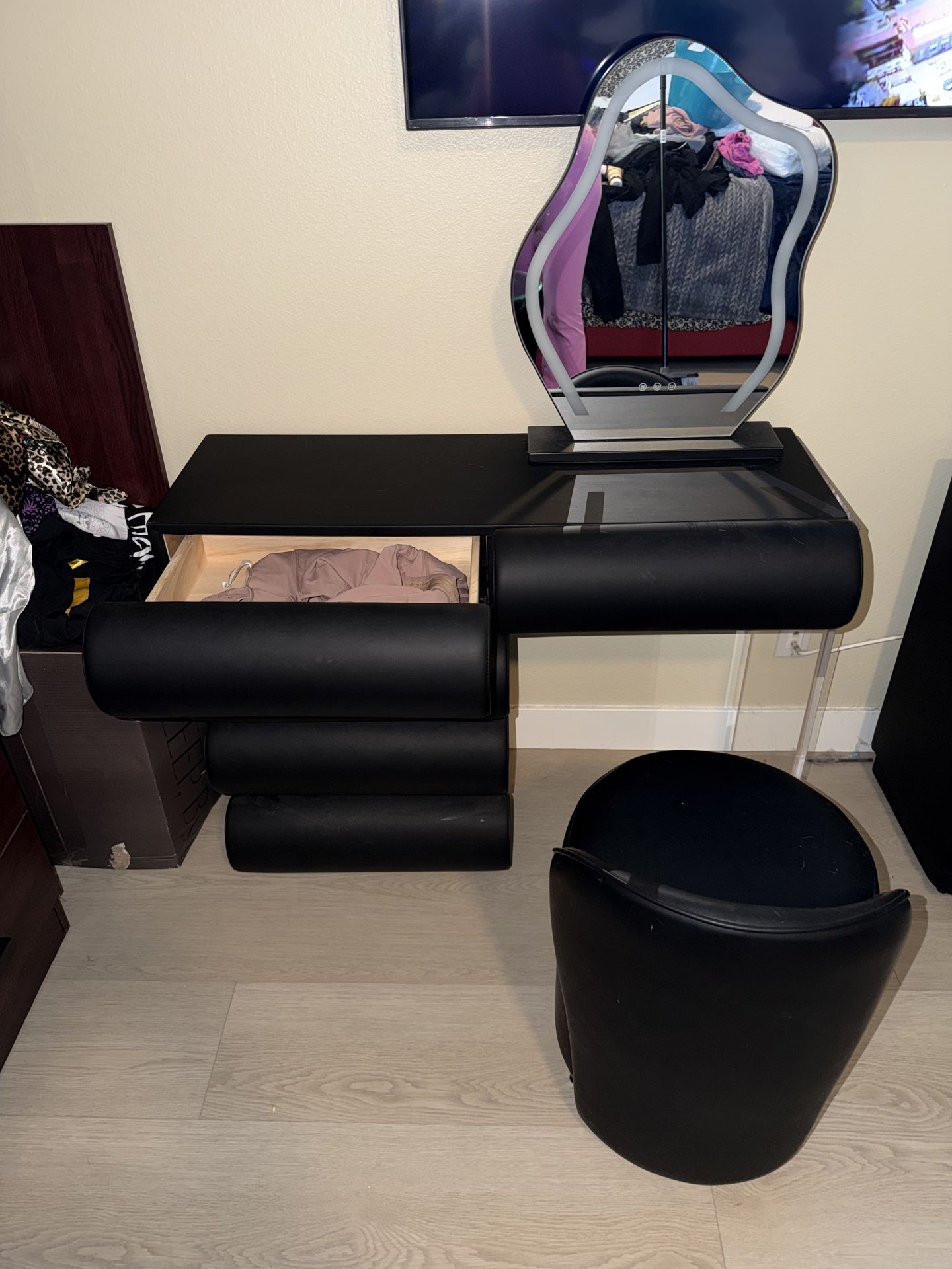 Makeup Vanity Table and Chair with Mirror Like new vanity make up set. I bought this vanity make up set in February 2025. I am moving out of state and I need to sale all of my furniture. It is in mint condition, nothing is wrong with it. I bought this item from Homary Furniture. Humply Leather Makeup Vanity Set with Mirror & Lights (40"-53") I paid $1,000 plus TAX for this make up vanity set, I am only asking $250 for it. No I do NOT deliver. CASH ONLY! No scams!!!! DO NOT TEXT ME ASKING FOR MY ZELLE OR VEMO!!! NO cashier's check! Call or text Monique (contact info removed)