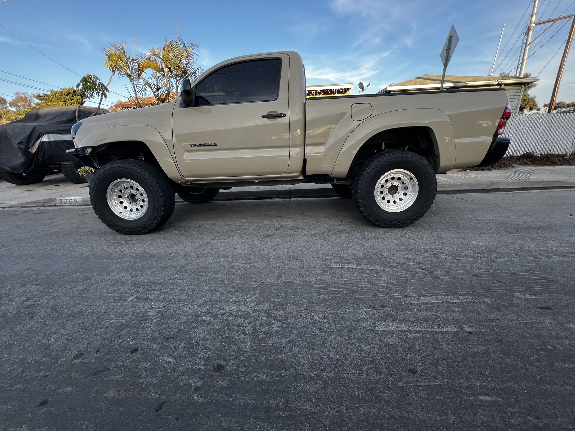 2WD clean title 2.7 4cyl motor (296k on dash/ around 130k on rebuilt engine Carplay touchscreen Prp hub New paint 5spd Manual AC/ Heat 285/75/R16 BFG K02 Bed mounted spare Mid travel setup: Front: Built Right uniball upper arms Leeper Coilovers(Icon) Fox bumpstops Total chaos gusset kits(double sheer upper arm/coil bucket, spindle, alignment cams) Plated stock lower arm Limit straps Rear: Deaver Leafs (j66) King shocks w/resi Total chaos bumpstop mount w/Fox bumpstops Two seat conversion included