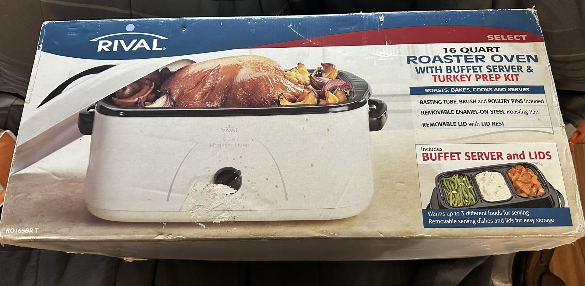 NEW RIVAL 16 QT QUART ROASTER OVEN WITH BUFFET SERVER RO162BR Never been opened. Box has storage wear.