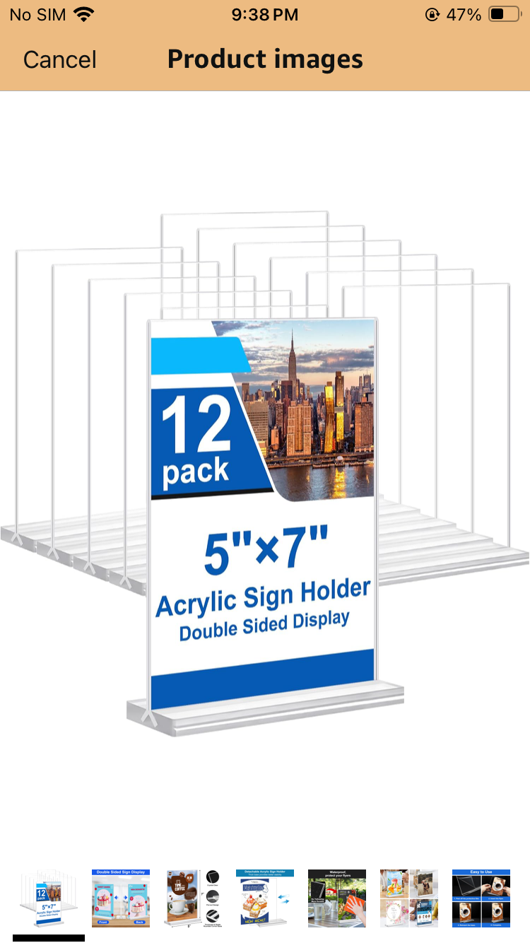 5x7 Acrylic Sign Holder, 12 Pack Vertical Plastic Signs Frame Table Top Display, Double Sided Display Flyer Holder Menu Holders Clear Stand for Office Store Show Fair Original price:$26 SA306