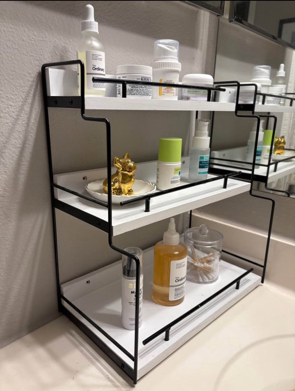 Add style and order to your bathroom, vanity, or kitchen with this sleek 3-tier organizer. I ended up with an extra, so I’m selling one that’s brand new and still sealed in the original box. The photos are staged with the one I kept—yours will be completely unused. What’s Included: 3-tier organizer (white shelves with black frame) All hardware and instructions for easy, fast assembly Why You’ll Love It: Maximize Space: Three spacious tiers make it easy to store and display skincare, makeup, perfumes, or kitchen essentials. Durable & Stylish: Crafted from real wood and sturdy metal with a modern, powder-coated finish to suit any décor. Versatile Uses: Perfect for bathrooms, vanities, kitchens, or even as a coffee station. Easy to Move: Lightweight with built-in side handles—rearrange anytime you like. Simple Setup: All hardware and clear instructions included for quick assembly. Condition Brand new, unopened box Photos show my personal organizer for reference; the one for sale is untouched Dimensions 7.9" Deep x 13.8" Wide x 15.8" High Price: $2 OBO Pick Up Stamford - Potential D/O if in area