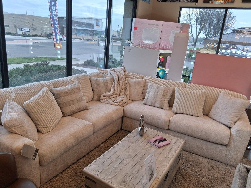 This sectional comes in three pieces with more options starting 1499.99 on sale Add a ottoman or chair just ask